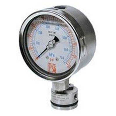 PMC Seal Gauges accurately measure pressure in industries where viscous materials are processed. The PMC design permits the diaphragm to be installed flush with the inside wall of pipes 3" or larger. This feature avoids the pocketing problems usually encountered with conventional seal gauge systems. The easy-to-read, all-stainless steel gauge is equipped for external damping to promote longevity. Gauges can be removed and exchanged or re-installed without loss of seal oil. Each gauge is equipped with a proven PMC transmitter and can be bottom or back connected for ease of visibility. PMC Seal Switches include a NEMA 4 rated enclosure and adjustable ranges.