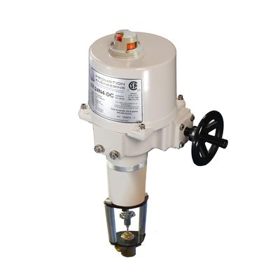 Designed and engineered for precision operation of linear process control valves. Up to 4400 lbs (19.57 kN) of force 2 inches (50mm) travel. Field Selectable Stops – Travel stops can be set by location with a mechanical switch or by a rated force switch, either on the down or up stroke. For example, the down stroke can be set with full force for consistent seating regardless of wear with the up stroke set by a mechanical switch to protect the stem plug connection. Proportional Control – Precision proportional control is achieved through a microcontroller based printed circuit board featuring 4-20mA, 1-5VDC, 0-10VDC or 2-10 VDC input and feedback as well as AutoCalibration or manual end of travel set point and alphanumeric diagnostic indicators. Manual Override – All ProMation Engineering linear actuators come with a standard manual override that allows fast and simple manual positioning.
