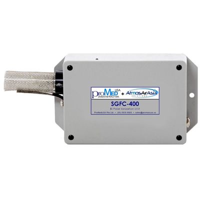 The AtmosAir FC-400 ionization system is intended to be mounted in the supply discharge in smaller air handling systems such as fan coil, heat pump and other unitary type systems. The system can be integrated on an OEM basis or a retrofit package is also provided. The unit will be calibrated at the factory per AtmosAir recommendations to attain ion level readings of between 350 and 1,500 –ions/cm3.