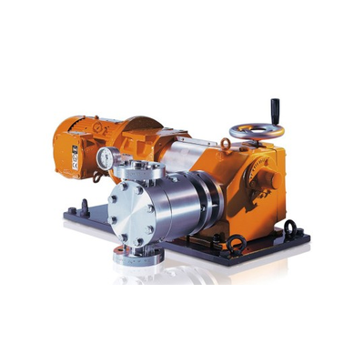 Capacity range of single-head pump: 3 – 7400 l/h, 400 – 10 bar. The ORLITA Evolution meets the most exacting safety requirements as an extremely robust hydraulic diaphragm metering pump. It is characterised by its PTFE multi-layer diaphragm with integral diaphragm rupture warning/signalling and unique diaphragm position control.