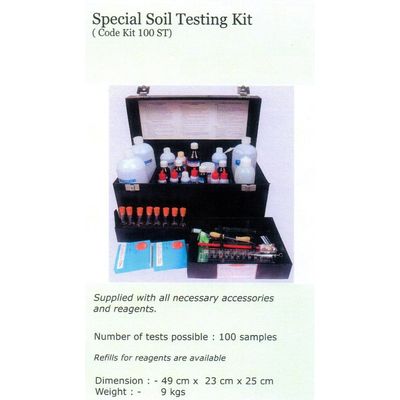 The (agricultural) soil test kits offer simplified methods for determination of available nutrients found in agricultural soils. A series of rapid, accurate chemical tests. use standardized reagents to produce color reactions measured against laminated color charts. Colorimetric test methods are used for most test factors. Some tests are based on turbidity measurements. A single extraction procedure (We recommend our water samplers for obtaining soil water samples from root zones) provides the liquid soil extract for all the nutrient tests. Soil pH is determined colorimetrically, covering the range of pH 3.8 to 9.6. Complete reagent refill packages are available for each outfit. All kits outfits are furnished in lightweight carrying cases with components securely mounted.