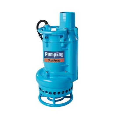 The ScatPump is an extremely durable, top-discharge slurry submersible pump with a mechanical agitator and wide clearances. The pump has a straight path from intake to discharge, so the ScatPump uses the pumped liquid to cool the motor.