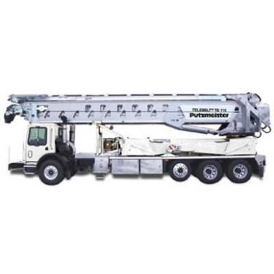 Handles 0 to 300mm concrete slump and places materials from sand to rock with 100mm aggregate size. TB 130 is the best solution for large construction sites where long reach and high volume output is required. ive section telescopic boom – base steel section and four telescopic high strength yet lightweight aluminum sections. A versatile (11,6m) 2-section aluminum „active“ hydraulic feed conveyor with 360° continuous rotation allows materials to be loaded from virtually any position desired.