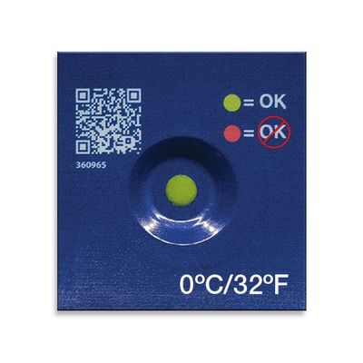 TempDOT Freeze labels provide an irreversible, visual alert if temperatures fall below Freezing. The easy to see color indicator lets you make an immediate decision on whether or not products may have been damaged by the cold. These low cost labels are an excellent choice for shipping food, pharmaceuticals, biological samples or any products sensitive to freeze damage.