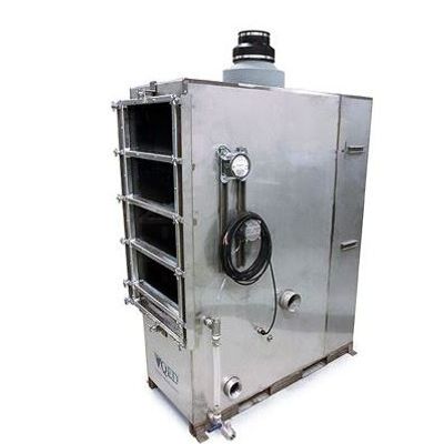 EZ-Tray® Air Strippers are sliding tray, stainless steel air strippers used to remove volatile organic compounds (VOC) from groundwater. As Groundwater enters through the top of the air strippers, millions of air bubbles are forced by the blower pressure up through the perforated trays, vigorously aerating the water to a froth and removing volatile contaminants (VOC) as gravity pulls the water down through each tray. This simple, revolutionary technology delivers up to 99% VOC removal, while the low maintenance and easy access cut O & M costs dramatically.
