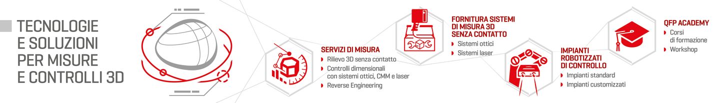 QFP develops and provides since 2002 Services and Solutions for Engineering, 3D Metrology, Automated 3D Measuring Systems and Customized Solutions for 3D scanning and process control for a wide variety of applications. A complete range of 3D contactless measurement devices allows QFP to handle any metrology task and digitizing application, providing measurement, inspection and reverse engineering services worldwide.