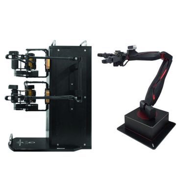 Quanser’s QArm is a 4 DOF serial robotic manipulator with a tendon-based two-stage gripper and an RGBD camera, designed for modern engineering education and academic research applications. Leveraging the intuitive graphical interface of Simulink® or expandability of Python™ and ROS, students get a systematic understanding of the design of robotic systems and concepts, including joint control, kinematics, path planning, statics, and dynamics. QArm comes with comprehensive studio-type course resources to motivate students and provide the basis for interactive challenges. The QArm curriculum is mapped to popular robotics textbooks by Mark Spong and John Craig. The open architecture design of QArm allows researchers to quickly develop and deploy their applications in machine learning, assistive robotics, collaborative robotics, and more, using both custom and internal control schemes.