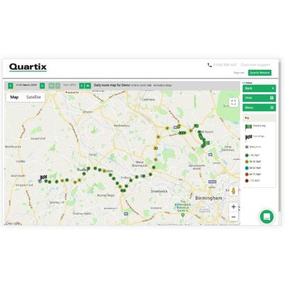 Using the Quartix business vehicle tracking system you can track your vehicles in real-time, anytime, using any internet-connected device. There is no need for proprietary software or maps - everything is accessed over the web. Our live vehicle tracking system uses GPS satellites to locate your vehicles, and mobile technology to ensure that their positions, routes and logs are constantly updated. Google Maps, backed by Satellite, Street View and Traffic Integration, is used to pinpoint your vehicles. Our website gives you instant access to 12 months` worth of history for each vehicle. Older data is archived for easy retrieval.