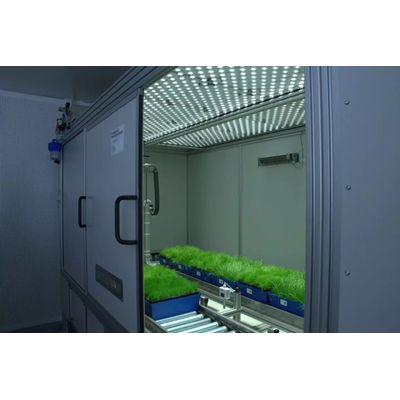 The PlantScreenTM Compact System is conveyer-based integrated robotic solution designed for digital phenotyping and cultivation of small and mid-size scale plants up to 50 cm in height (e.g. Arabidopsis, Strawberries, Turfgrass, Soybean, Tobacco, Corn seedlings, etc.). The Compact system has an internal conveyor that may be attached to an external conveyor, if required. Potted plants may be transported individually, or multiple pots may be arranged in trays. Trays can be customized and adapted to carry different numbers and types of samples, such as multiple plants in pots, in vitro samples in multiwell plates etc. Numerous species may be studied, or a single species may be studied throughout its growth cycle. Multi-sensor digital data may be acquired from top and side views.