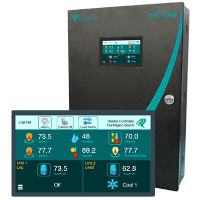 The RSC 1000 Remote Site Controller by Quest Controls serves as a central management system for remote facilities, integrating IP connectivity to monitor and control multiple aspects of critical infrastructures. It supports HVAC systems, power meters, generators, fuel cells, solar panels, and fuel tanks, all accessible through a user-friendly touch screen interface. The device includes Modbus communication for seamless integration with compatible devices, ensuring efficient operation and management of remote sites. Designed for reliability, the controller features robust logging capabilities to record data, alarms, and control states. Its expandable design supports up to four HVAC units when paired with RSC-ACX modules. The RSC 1000 enhances facility automation with precise control over environmental parameters, boasting comprehensive I/O options, including digital and analog inputs/outputs, and robust network protocol support.