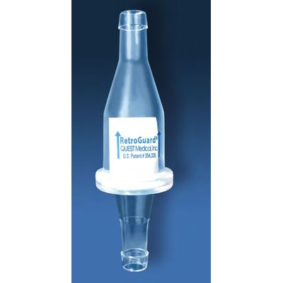 Automatically prevents retrograde arterial blood flow in the event of centrifugal pump failure. Large duckbill valve minimizes resistance to flow.