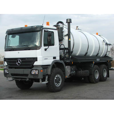 Mercedes-Benz Actros 3341 (6x6) truck chassis, specially designed for off-road use in the african dessert with vacuum tank body, 20.000 l. capacity. Tank constructed with FE510 steel plates, 6 mm thick. Spray bar mounted on the rear of the truck.