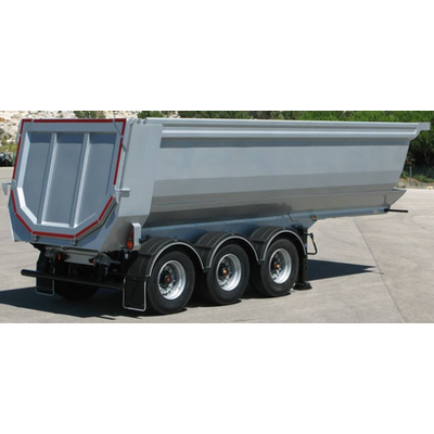 3-axles rear tipper semitrailer made of Hardox 450. Capacity: 30 m³. Mechanical tridem suspensions (SAF). Twin-wheels 12 R 22,5 or 13 R 22,5. Drum brakes 420x200 mm. The box is available with bottom 6 or 8 mm and in multiconic or sqare shape.
