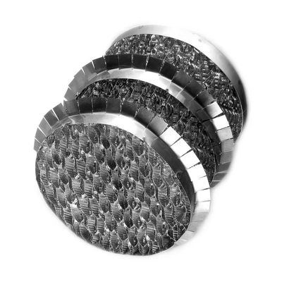 Mist eliminators (Or Demisters) serve a purpose just as their name would imply – They capture mists that may form in a column. Mist eliminators function to reduce droplet entrainment exiting a column through the use of inertia. Undesirable droplet byproducts can be kept within a column with the use of a mesh eliminator. Pictured is a mesh pad type mist eliminator with support grids. Mesh pads can capture droplets down to 10 microns. Mist eliminators also exist in a chevron type, which has lower pressure drop than a mesh pad, but also is not as efficient at droplet capture. We would love to talk more with you about your particular application.