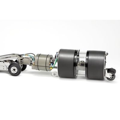 The Vario Kampac has two test plugs, connected via a telescopic rod for leak tests up to 5 m distance with one end having a packer together with a pan and tilt camera. Similar to our satellite systems, there is a special adaptor for a flexible or spring-loaded connection to the main camera. At this connection, the lateral sealing plug is fixed; which is then accurately positioned through the movement of the pan and tilt of the camera as well as through the maneuvering of the crawler.