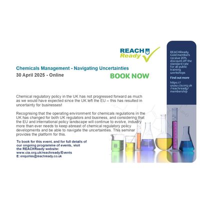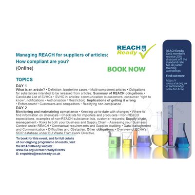 Ideal for anyone who needs to understand more about their obligations under the EU27 and UK REACH Regulations, and also of interest to suppliers of substances and mixtures who are looking to support their EU and UK customers on REACH.