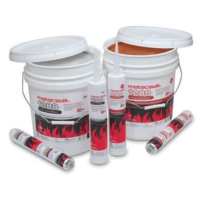 All grades of Metacaulk 1200 are single-component, general-use fire-rated sealant for construction joints. Cures to elastomeric membrane seal suitable for dynamic movement areas. Prevents spread of flames/smoke/hot gas/water through joint openings.