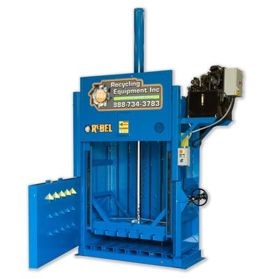 Introducing the most innovative and versatile vertical balers in the industry: The REI REBEL Series Vertical Balers. REI Vertical Balers are engineered with heavy steel throughout and fixture welded components. All REI Vertical Balers produce high-density bales of a wide variety of materials in a single baler.