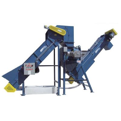 REM`s MCB 15 makes aluminum can-buying fast and efficient. Cans are loaded into the conveyor hopper by the operator or customer. The low hopper design and open conveyor provides easy access for sorting out trash, bottles, and other contaminants. The cans are conveyed across a magnetic head pulley that removes the steel cans and allows only clean aluminum cans to fall into the weigh-hopper. With the optional scale and indicator, the operator can record the weight, trip the weigh hopper door, and discharge the aluminum into a can crusher or other processing equipment.