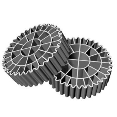 SAGM 650/800 - Random fill media obtained by extrusion, being manufactured in PEHD or, on request, in special technopolimers. The possibility of different materials of construction provides a flexibility for employment of the product at a diversity of operating temperatures and/or adapted to the specific chemical compounds to be handled in the unit in question.