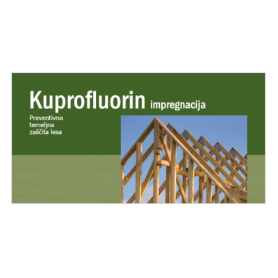 Kuprofluorin impregnation – protecting woodKuprofluorin impregnation well penetrates into the wood with which a deeper protection of the wood is achieved. Kuprofluorin impregnation is water-soluble and does not contain chromium compounds. You can choose between two standard colour shades brown and green.We recommend Kuprofluorin impregnation mainly due to its long lasting and efficient protection of wood constructions (e.g. roofing) from all types of wood pest (insects and fungi). Kuprofluorin impregnation is used as a basic protection for a variety of other wood products, such as fences, pergolas and wainscot; however we have to additionally protect them from weather conditions with coatings for wood weather protection, e.g. Lazurin acqua or Lazurin. Such protected surface is further impregnated to improve its aesthetic appearance.