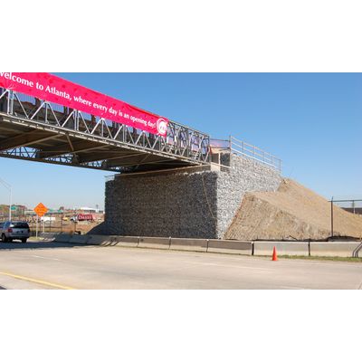 GeoTrel is a wire-faced temporary MSE wall system, consisting of high-strength extensible geosynthetic reinforcing strips (GeoStrap™) connected to wire mesh facing. The system provides a cost-effective solution for temporary wall applications where aesthetics is not a critical requirement, precast concrete facing is cost prohibitive, or heavy lifting is not feasible. GeoTrel is ideal for temporary structures used in roadway widening, bridge phasing, and surcharges for inducing settlement.