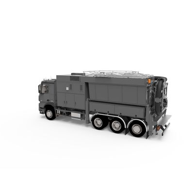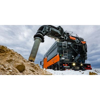 The combination of small dimensions and installed suction capacity makes the ESE 4 the ideal solution for inner-city excavations in confined spaces. The overall width of only 2.30 m enables narrow streets and small building sites to be negotiated without any problems. The machine impresses in everyday use with its capacity of 4 m³ and a tipping axis height of 2.10 m. The superstructure can be mounted on all twin-axle chassis (4 x 2) with a wheelbase from 4200 mm, a vehicle width from 2.30 m and a maximum permissible gross weight of 18 t. The chassis engine should have at least 210 kW.