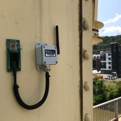 The Resensys IoT sensor is versatile and provides an easy and inexpensive way to install a scalable solution for distributed structural integrity monitoring. It can measure two separate strain gauges. The transceiver and the solar panel can be easily mounted with either flanges or adhesive, both attached to the outer box. The device comes with a high-capacity lithium-ion battery charged by a solar panel. It does not require battery replacement; so that once installed, it is almost maintenance free. The whole product meets IP68 standard (completely weatherproof). As a result, it is an excellent choice for strain monitoring applications that require the sensors to be installed some outdoor places which are often hard to reach.