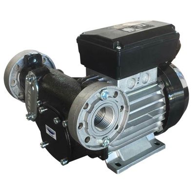 High flow vane pump for diesel transfer. One-direction flow with integrated on/off switch. Continuous duty, self-priming, self-ventilated, with built-in bypass. Not for use with gasoline.