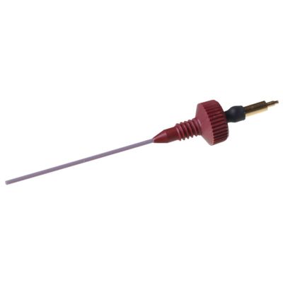 For almost all measuring cells, we offer Pseudo-Reference Electrodes based on metal wires. The table below gives an overview of all available materials and of the compatibility with the measuring cells. If a true reference electrode is required, capillary-based Microreference electrodes can be chosen instead (currently NOT available!). They are compatible with most measuring cells and are available with different cell chemistry, that can be adopted to your specific requirements. For example, we offer aqueous Ag/AgCl electrodes but also AgTFSI/EMImTFSI (ionic liquid based) systems. Next to the capillary-based microreference electrodes, a refillable reference electrode is available. The electrode contains a wire (i.e. Ag/AgCl) with outside contact, and a frit for contact with the outer electrolyte and can be filled with the inner electrolyte of choice (i.e. aqueous KCl). Tightening the wire fitting then seals the electrode.