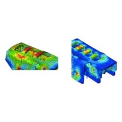 We calculate and optimise parts using FEM tools. Example: Mount of an automotive application (software in this case: CATIA FEM).