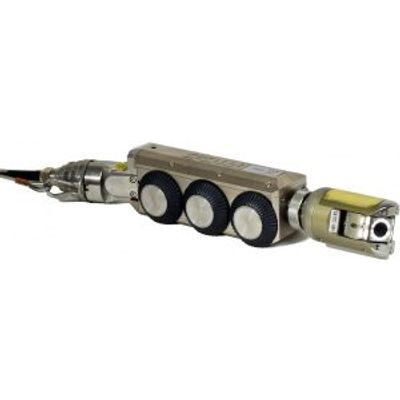 The FW100CT.2 is a versatile camera carriage for sewer inspection from a pipe diameter of 100 mm and bigger. The carriage can be optimally configured for every pipe diameter. The steerable carriage is driven by 6 easily exchangeable quick change wheels, which can be changed in seconds without tools. The FW100CT.2 can handle larger pipe diameters with the electric elevator. This is recommended for use up to Ø 700 mm and can be installed comfortably and without tools, so that short set-up times for pipe adaptation are achieved. This enables efficient work at the highest level. The powerful trolley is equipped with a longitudinal and transverse slope sensor with tilt protection, among other things, this function ensures active tip-over protection and always allows the carriage to drive safely in the pipe plate.