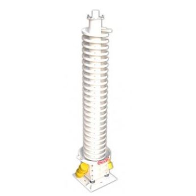The ELV vibrating elevator consists of a spiral tray welded to a robust central pipe in whose foot or head it has vibrators. The material ascends by vibration of homogeneous and constant way. It is used for vertical conveying and, given its great developed length, for cooling materials. Rollier has vibrant elevators with false bottom and water traffic in the interior to get better cooling. The vibrating elevator ELV Series can be manufactured in carbon steel, stainless steel AISI 304 and stainless steel AISI 316 and 316L (for the food industry). As optional, a plastic or a metalic dust proof cover can be delivered with dust aspirations pipes where required. When required, the spiral tray can be made with perforated sheet in the bottom, to assure more ventilation for hot materials. Easy to install, the ELV vibrating elevator only needs a leveled concrete floor to set it with chemical anchors.