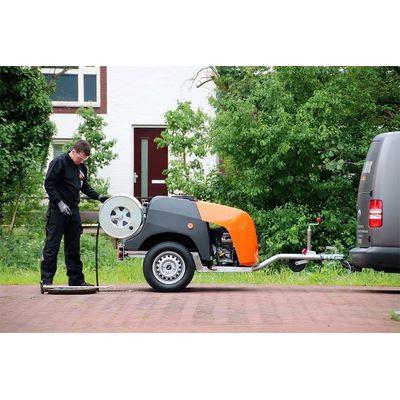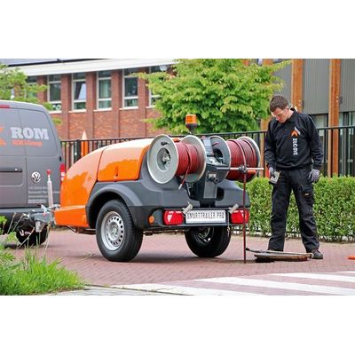 The new ROM SmartTrailer PRO sewer cleaning trailer is packed with smart solutions based on more than 40 years of experience. Ideal for unblocking and cleaning domestic connections and main sewer systems up to Ø400 mm. You can choose from a petrol or diesel engine, a cleaning pressure up to max. 160 bar, and a water capacity up to max. 60 l/min.