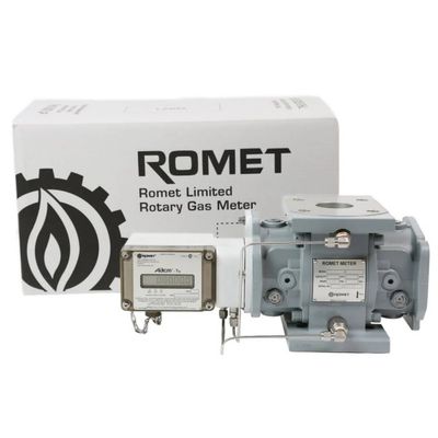 Romet measurement devices utilize positive displacement rotary technology. Rotary technology relies on the rotation of two figure eight shaped impellers to perform the measurement operation. These impellers have shafts held in low friction bearings and positioned 90 degrees in relation to each other by precision timing gears. The impellers contra rotate in semi cylindrical housings enclosed by head plates at either end. Very close tolerances and timing gears insure that an effective capillary seal is achieved, at the same time insuring that the impellers and housing do not come in contact. As gas enters the inlet of the meter, a pressure differential is created from the inlet and outlet of the meter, causing the impellers to rotate. The volume displaced by each revolution of the impellers is transmitted to a final module readout to begin collecting and organizing the generated data.
