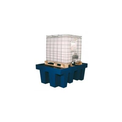 Polyethylene IBC Spill Containment Pallet. A large capacity spill pallet, which complies with the 110% bund regulations designed for use with most common footprints of 1000ltr intermediate bulk container (IBC). The IBC sits on integral support columns above the sump and the unit has broad range chemical compatibility. Dimensions: 1590 x 1455 x 715 mm. Weight: 80 Kgs.
