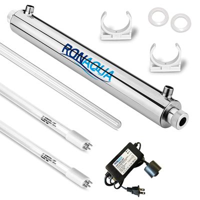 Our UV light water sterilizer is an advanced powerful 55W and 12 GPM UV unit designed to efficiently kill harmful bacterias, E Coli, viruses, fungi, algae and most microorganisms including cryptosporidium, giardia, etc. This ultraviolet water filter system is an environmentally friendly alternative to chlorine disinfection and has no disinfection byproducts making sure no harsh chemicals are needed. It protects your family from waterborne contaminants including microorganisms to deliver sparkling clean and great tasting water.