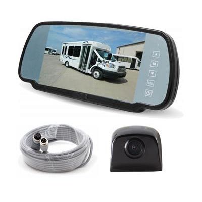 10" x 30" Rearview Mirror/Monitor Kit w/Two (2) Cam. Inputs, 7" Monitor & Color Camera. MOR-Vision STSK1030 Backup Camera System is a more advanced driver aide for shuttle and paratransit buses that includes a camera mounted on the back of the bus sending images to a monitor installed within the interior rearview mirror of the bus.