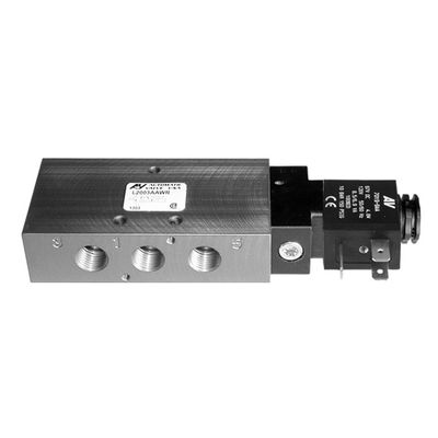 5/2 spring return. In-line mount. Spool construction. 1/4" & 3/8" port sizes.