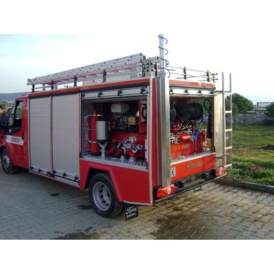 The system is designed for rapid intervantion, narrow street fire fighting application and the places where diffucult to Access. The system consist of water –foam tanks, seperate diesel engine which ensures easy approach to fire efficiently. No need for outer power to operate. The system can be mobile type and also can be mounted on vehicle or on trailer. Water and foam capacities can vary depending of gross vehicle weight