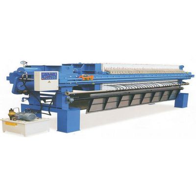 Chamber Filter Press is the traditional recessed chamber filter press operation employs a steady increase in pressure over time as the cake thickness increases, in order to achieve the optimum combination of chamber filling and cake dryness. At a significantly reduced filtrate rate, the filtration is stopped, the press discharged and a new cycle started. Chamber filter presses are reliable and robust in many different applications. The plate pack consists of uniform chamber plates with a recess of 15 - 50 mm to from the filter cake. A chamber plate is a combination of a filter plate and two half frames in once piece. The standard material for chamber plates is Polypropylene. Possible operating pressures: 7, 15 and to the max of 24 bar (kg/cm2).