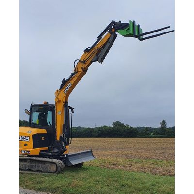Pallet forks for excavators are an extremely useful way of moving materials on site especially when the going gets tough. We can manufacture fork carriages for any size excavator. The carriages have a castellated top bar allowing the forks to be fixed in a multitude of widths. We can also manufacture carriages for telehandlers. Theses carriages can be specified with an "overgrab" allowing objects such as trees to be clamped. We also manufacture pipe clamps. A client came to us with an issue. They were working on a site where health and safety was tight. No one was allowed onto the load bed of the lorry to strap or sling the large pipe. We came up with a way to handle and clamp two pipes but also of varying sizes from 300mm to 750mm without the need to manually adjust the carriage. The twin clamp arm automatically by way of hydraulic valves adjusts to single or double pipe irrespective of size. The carriage also has a 2m wide adjustable fork stance to cope with long lengths safely.