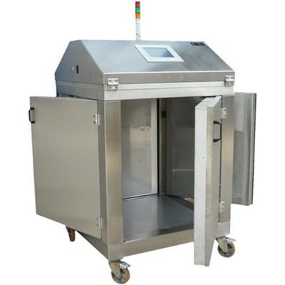 The BOX COUNTER system is designed to perform a fast gamma contamination check of laundry, waste bags, tools and other small objects. Measurement results, alarms and malfunctions are displayed by the control console as well as the alarm unit.
