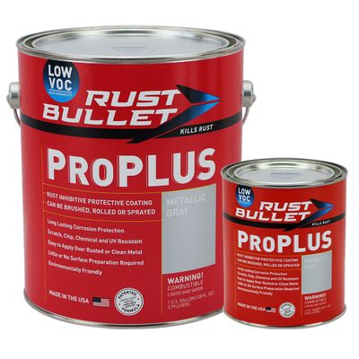 ProPLUS Rust Inhibitor Paint Factory Direct Pricing Twice the Quality Half the Price. Little or No Surface Preparation Required. Awarded Two United States Patents. Paints Directly Over Rusted and Clean Metal UV Resistant Won’t Fade or Crack. Easy to Apply and Maintain. Topcoat paint Optional. Brush, roll, or spray on. Low VOC Formula 50 states and South Coast Air Quality Management District compliant. Covers approximately 300 square feet, per gallon, per coat, depending on the porosity and texture of the substrate. A minimum two coat application is required.