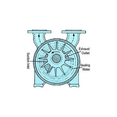 The main body of a water- ring pump consists of a circular casing and an impeller, where the impeller is centered a little offset from the center of the casing.