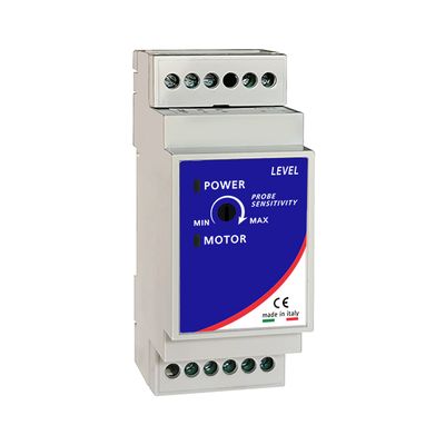 LEVEL CONTROL RELAY WITH ADJUSTABLE PROBE SENSITIVITY DIN SERIES. Level relay serie DIN with 3 level control probes, float switch input and adjustable probes sensibility.