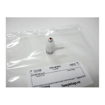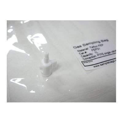 Our Teflon gas sampling bags are made of Fluropolymer (FEP) film and are highly inert for storage of gas samples. FEP film is the most chemically resistant film in the fluoropolymer family with low adsorption. The thickness of the FEP Teflon film is about 0,07 mm. These Teflon bags are very suitable for sampling at extreme temperatures ranging from ca. -205 degrees Celsius to +205 degrees Ceclius allowing these bags to be used under a wide range of conditions.