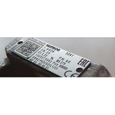 At the beginning of 2020, SAMSON started to equip valves, pneumatic actuators and valve accessories with electronic nameplates. Important features of the electronic nameplates are the Data Matrix code and serial number: The Data Matrix code encodes a device marking that is unique the world over. The serial number is a device identifier assigned by SAMSON.