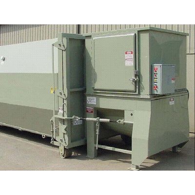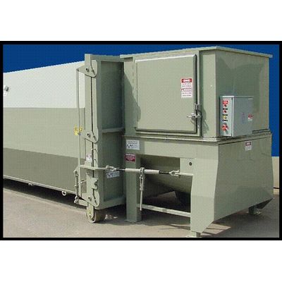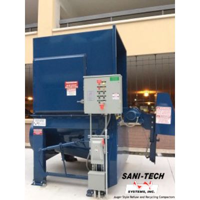 Sanitech auger compactors pre-crush and compact in one powerful motion. While processing material, the auger continuously runs in a forward direction, crushing and reducing the size of what it is fed. This enables it to compact up to five times faster than conventional hydraulic compactors. The Model ST-15-54/36 was designed to handle larger corrugate boxes and other larger items of trash / waste / recyclables. No need to flatten boxes, store bales, or bother with maintaining messy hydraulic systems. The Sani-Tech 1554/46 Corugate Compactor will compact 8-10 tons of material in a 40 yd container. The material will not bind inside the container, a common problem with ram-style compactors. The spiral feed and destruction of the boxes prevents material spilling from the container during bin seperation.