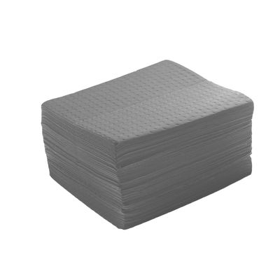 Our absorbents are of a unique type of polypropylene fabric with an SMS layer that provides very good absorbency for all types of liquids. The sheet/cloth has fast absorption and retains the absorbed product well, without the risk of drips and spills. When saturated, the sheets/cloths can absorb approx. 10-12 times their own area weight or, in volume, over 2 liters/m2 for the thinner sheets up to 5 liters for the thicker ones. Results depend somewhat on the type, viscosity and temperature of the absorbed liquid.